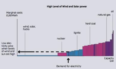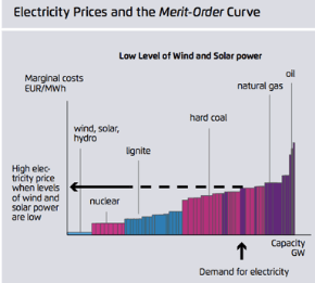 In many electricity markets gas-fired generators produce the marginal quantities of electricity (typical merit order shown below) and set the electricity market price most of the time.