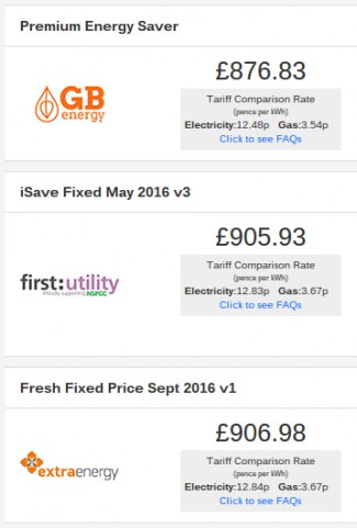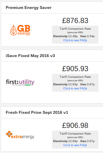 Here is an illustration of what some of the cheapest UK energy providers offer (Gas/electricity price gaps in those examples are 12.48/3.54=3.53x; 12.83/3.67=3.5x):