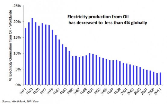 But over the last 30+ years the share of oil in electricity generation mix has reduced from 20% to less than 4% today and continues to fall.