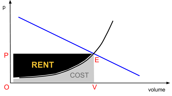 One important characteristic of a traditional supply curve is its steepness towards the right end of the curve. This is purely a geological phenomenon as easy oil in Saudi Arabia costs 5$ per barrel to extract vs. 50$ in the US. This steepness has important financial consequences. As the price on the free markets is set by the marginal producers the economic characteristics of energy business are very different in left end of the cost curve vs. the right end of the cost curve. Towards the right energy business is a high capital intensity manufacturing business with normal returns on capital; towards the left it is all about rent.