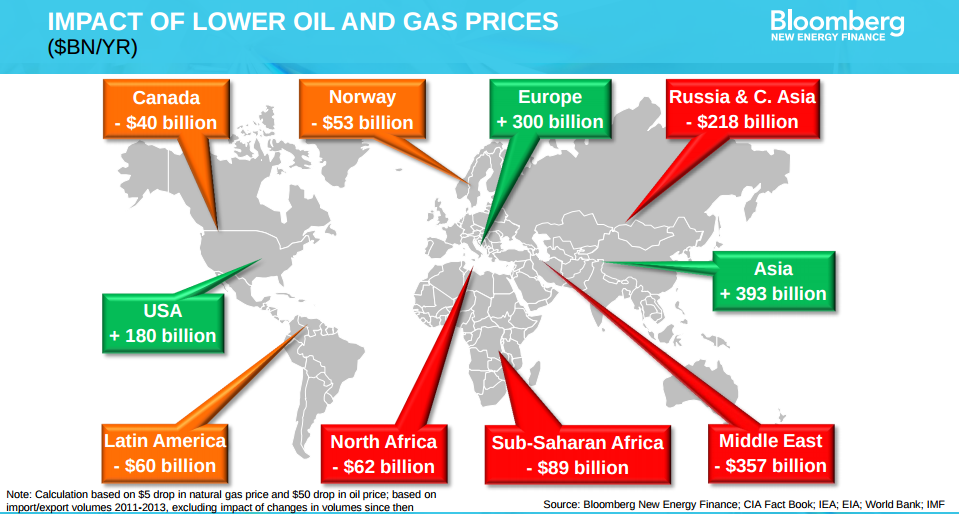 We are talking hundreds of billions of US dollars a year. Here is a Bloomberg’s attempt to estimate what elimination of the rent from the energy industry would mean for the international trade (with implications for relevant current accounts and currencies).